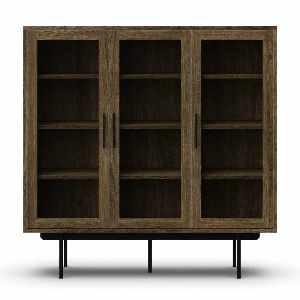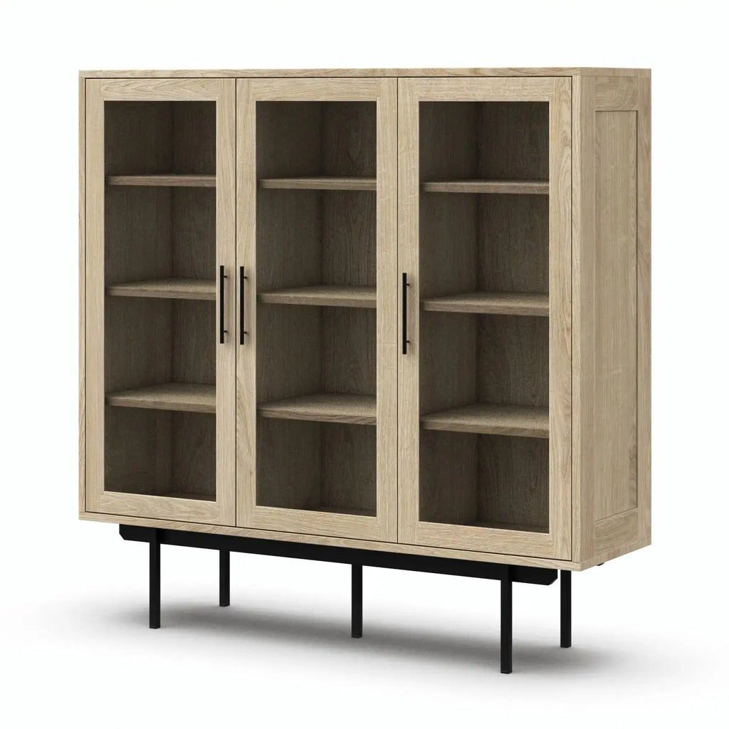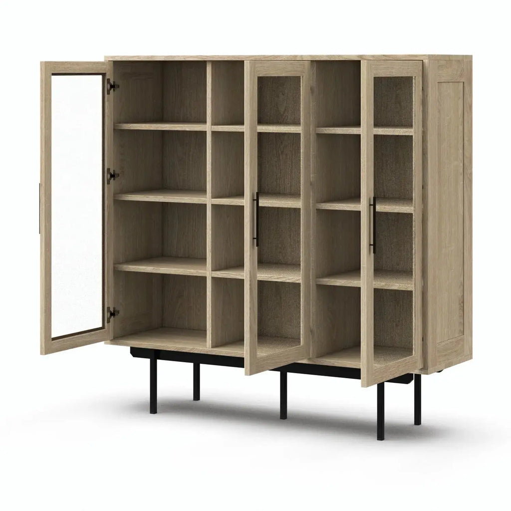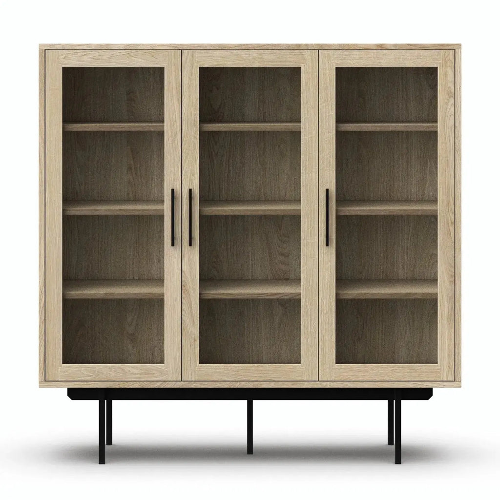 Das Biwa Highboard verfügt über drei großzügige, verglaste Fächer, in denen Lieblingsstücke perfekt zur Geltung kommen. Hinter jeder Tür bieten verstellbare Einlegeböden flexible Möglichkeiten für unterschiedliche Aufbewahrungsbedürfnisse. Die Metallbeine sorgen für stabilen Halt und verleihen dem Möbelstück gleichzeitig eine moderne Note.