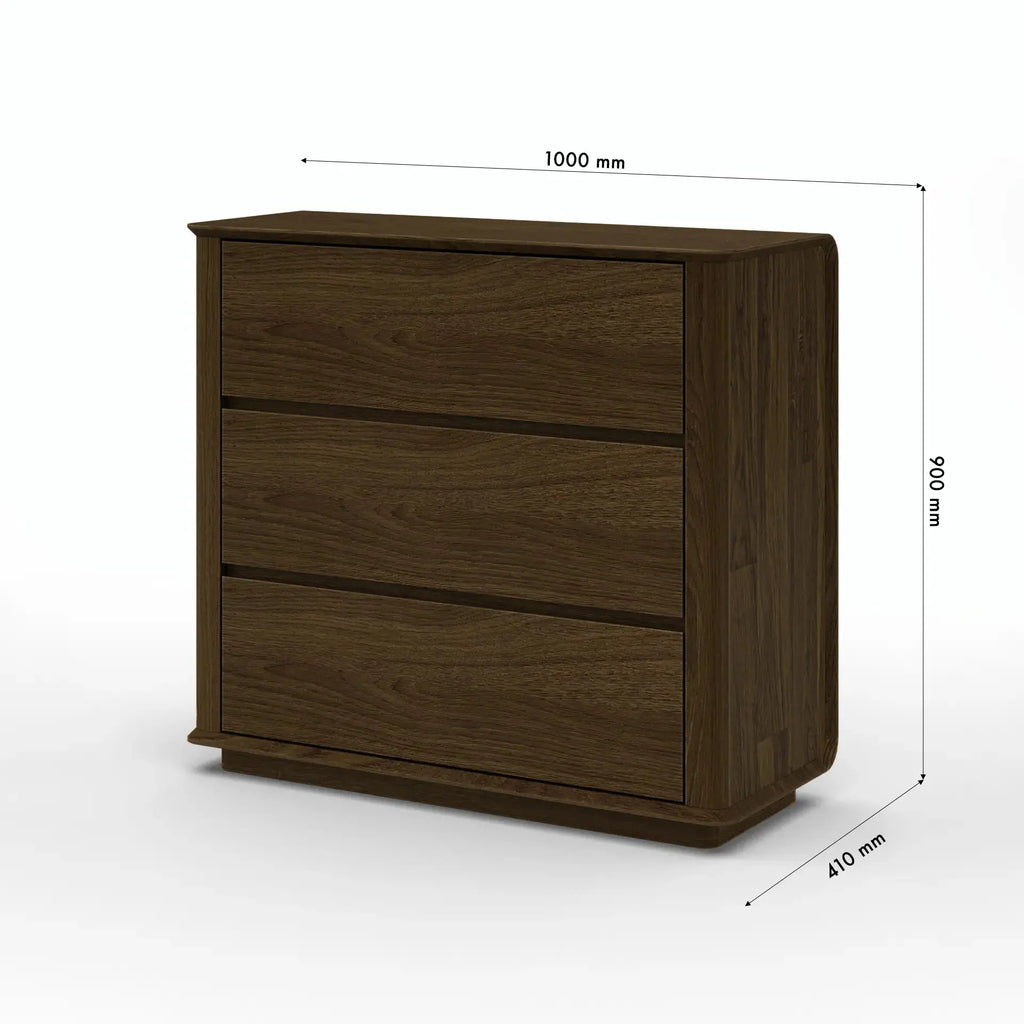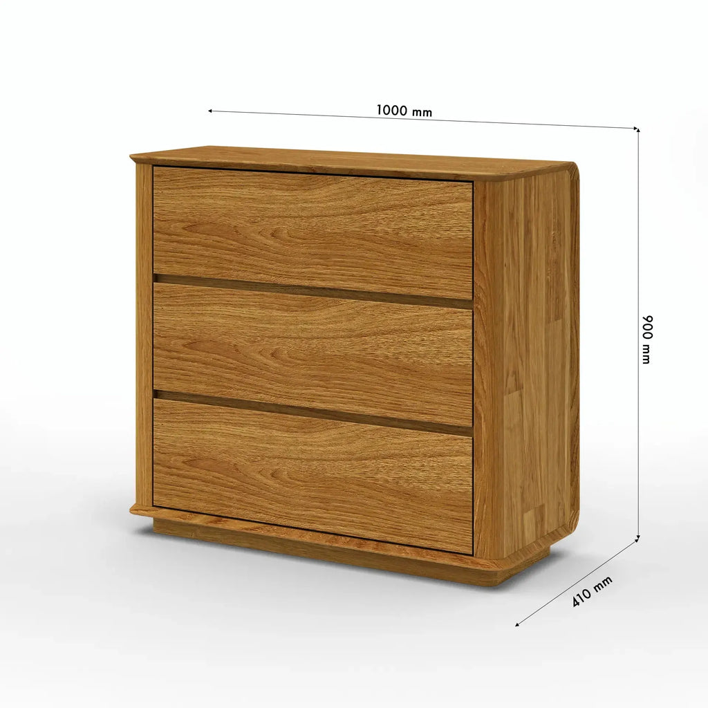Praktisch gestaltet, verfügt die Kommode über drei geräumige, leichtgängige Schubladen, die zuverlässigen Stauraum für Kleidung, Accessoires oder alltägliche Haushaltsgegenstände bieten.