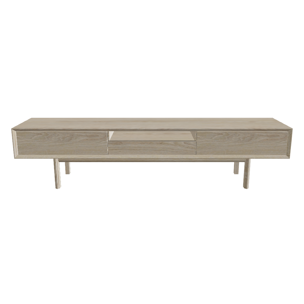 Die natürliche Holzmaserung verleiht dem TV-Lowboard ein warmes und einladendes Erscheinungsbild. Die ausgewogenen Proportionen machen es sowohl für moderne Räume als auch für von der Natur inspirierte Wohnstile geeignet. Das Design ergänzt zeitgenössische Einrichtungsstile, fügt sich aber auch harmonisch in traditionellere Umgebungen ein.