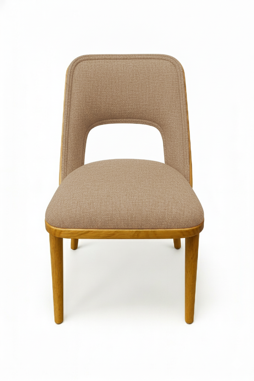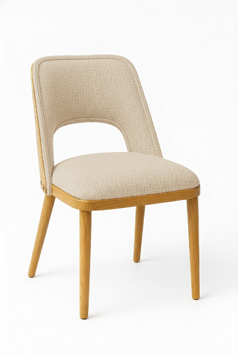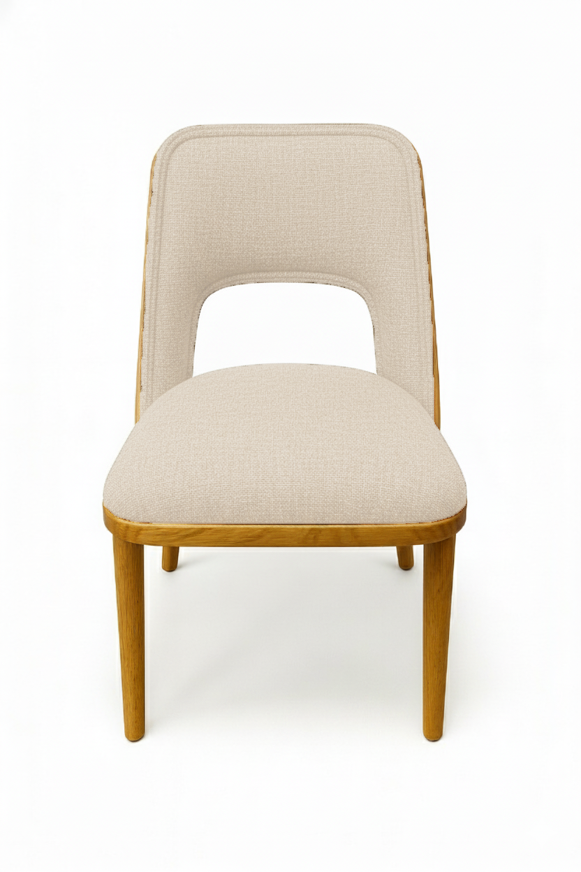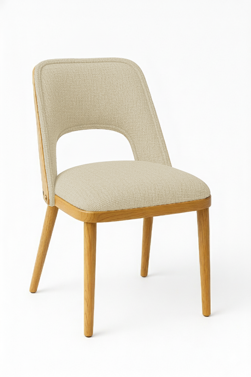 This elegant wooden chair with a white upholstered seat and backrest combines minimalist design with refined comfort, making it ideal for dining rooms, kitchens, or modern offices. The natural wood frame with clean lines and the distinctive open‑back detail create a contemporary and stylish look. Durable and versatile, this chair enhances any interior with timeless elegance and functionality.