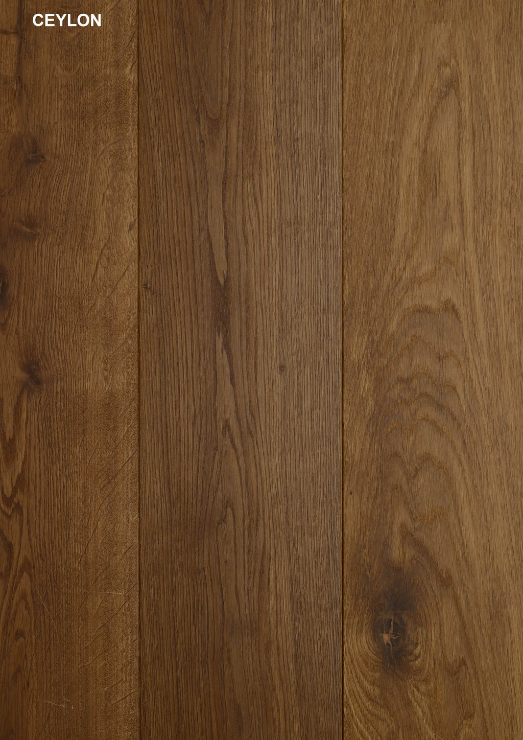 I pavimenti in parquet in rovere naturale nel colore Ceylon sono la combinazione perfetta di bellezza naturale e stile raffinato. La calda tonalità di rovere mette in risalto le venature naturali del legno, riempiendo lo spazio di intimità ed eleganza. Questo parquet diventa un accento sofisticato in qualsiasi interno, che sia classico o minimalista moderno. Un'ampia gamma di dimensioni (larghezza: 140 mm, 160 mm, 180 mm, 200 mm) e la distribuzione ponderata delle lunghezze delle doghe - 60% da 1800 a 2700 mm e 40% da 600 a 1500 mm - consentono una pavimentazione armoniosa con un motivo naturale. Con uno spessore di 15 o 20 mm , questi pavimenti assicurano eccezionale resistenza, durata e comfort, rendendo "Ceylon" una scelta affidabile ed elegante per la tua casa.