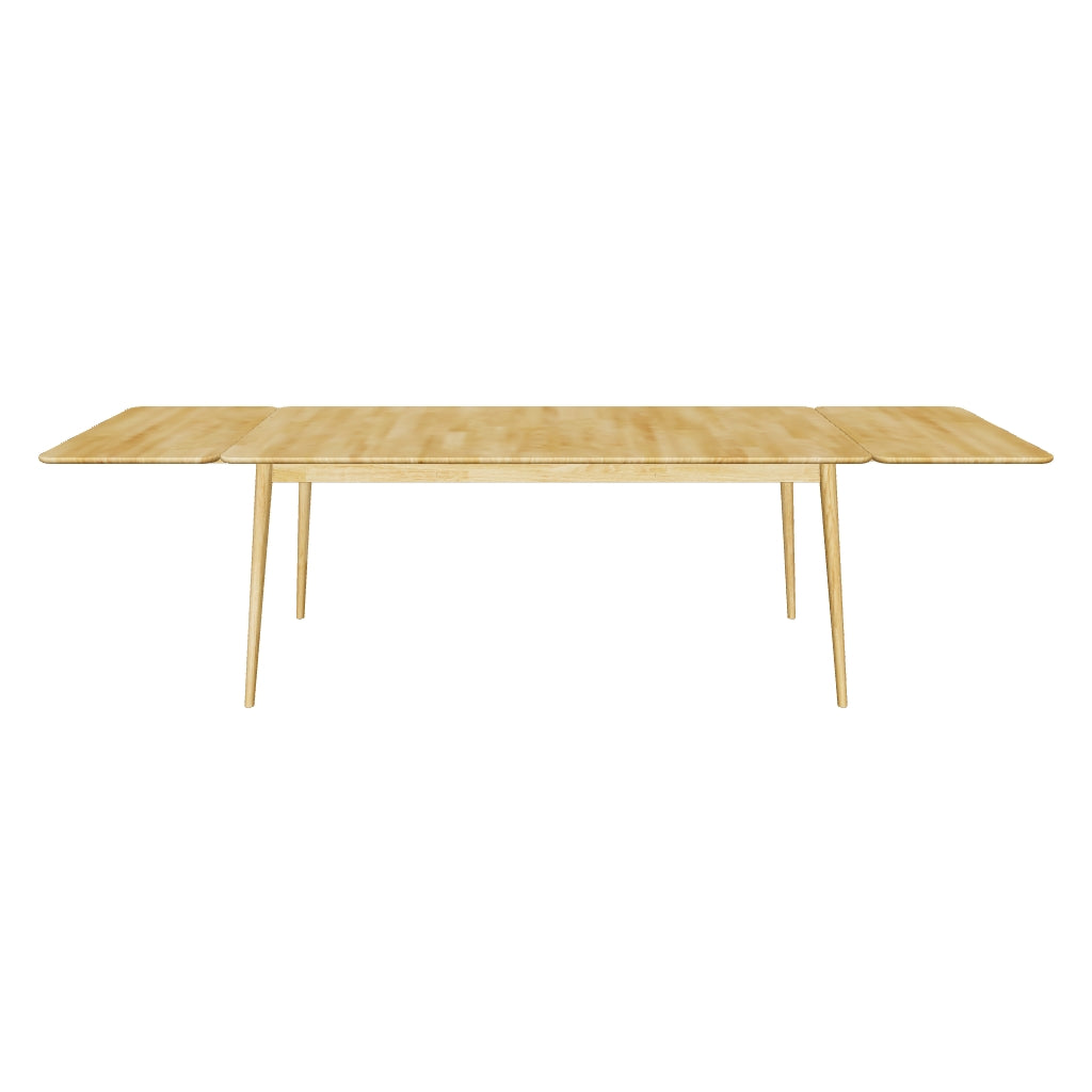 Il tavolo da pranzo Ekholm unisce la semplicità scandinava alla funzionalità moderna, realizzato in legno naturale con linee pulite e minimaliste. La sua struttura allungabile (L 140 cm × P 90 cm × H 75 cm e L 180 cm × P 90 cm × H 75 cm) con due prolunghe laterali aggiuntive (L 50 cm × P 90 cm cm ciascuna) garantisce flessibilità sia per i pasti quotidiani che per le occasioni più numerose. Una scelta ideale per chi cerca un tavolo da pranzo in legno resistente, elegante e versatile per interni contemporanei.