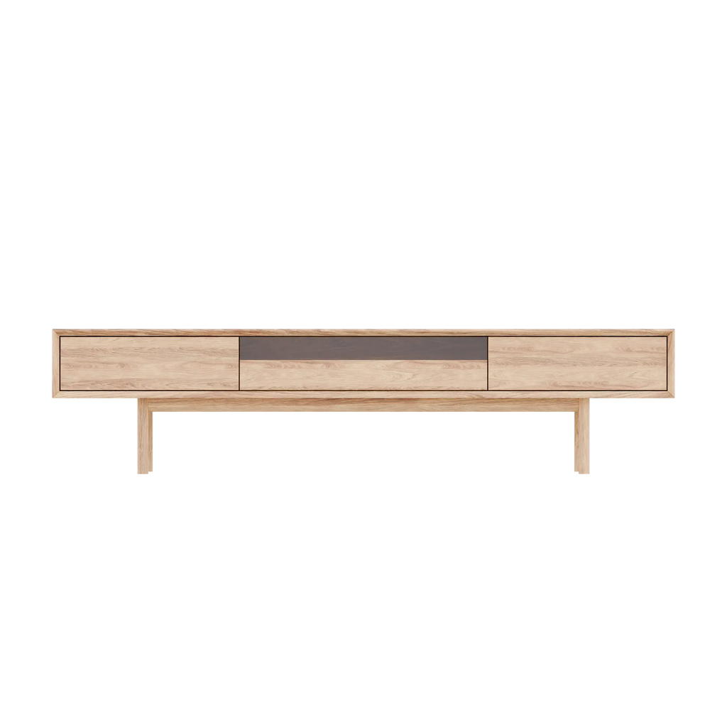 Il Porta TV Kodama è dotato di tre ampi cassetti per un contenimento discreto. Ogni cassetto permette di tenere in ordine telecomandi, accessori e oggetti di uso quotidiano. Il vano centrale aperto offre accesso rapido a dispositivi multimediali, console o elementi decorativi.