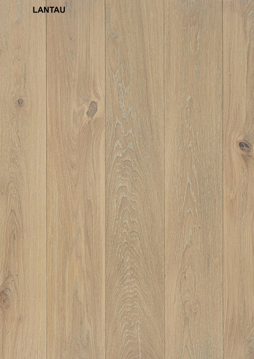 I pavimenti in parquet in rovere naturale nel colore Lantau incarnano l'estetica naturale e l'eleganza raffinata. Le tonalità chiare e nobili evidenziano la texture naturale del legno, riempiendo i tuoi interni di un senso di spaziosità, calore e armonia. Questo parquet funge da base perfetta per qualsiasi stile, dagli interni classici alle soluzioni minimaliste moderne. La varietà di dimensioni (larghezza: 140 mm, 160 mm, 180 mm, 200 mm) e la distribuzione attentamente studiata delle lunghezze delle assi - 60% da 1800 a 2700 mm e 40% da 600 a 1500 mm - creano l'effetto di un motivo naturale e armonioso. Con uno spessore di 15 o 20 mm , questi pavimenti garantiscono elevata resistenza, durata e comfort, rendendo Lantau una scelta eccellente per la tua casa.